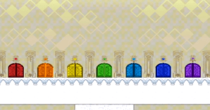 Additionally, as you open more worlds, you add more different-colored doors to the Flipside Tower, and overtime, it creates this beautiful, rainbow-esque palette that culminates in a symmetrically balanced shape as well. So, your progress in the game is reinforced by the creation of this beautiful shape.